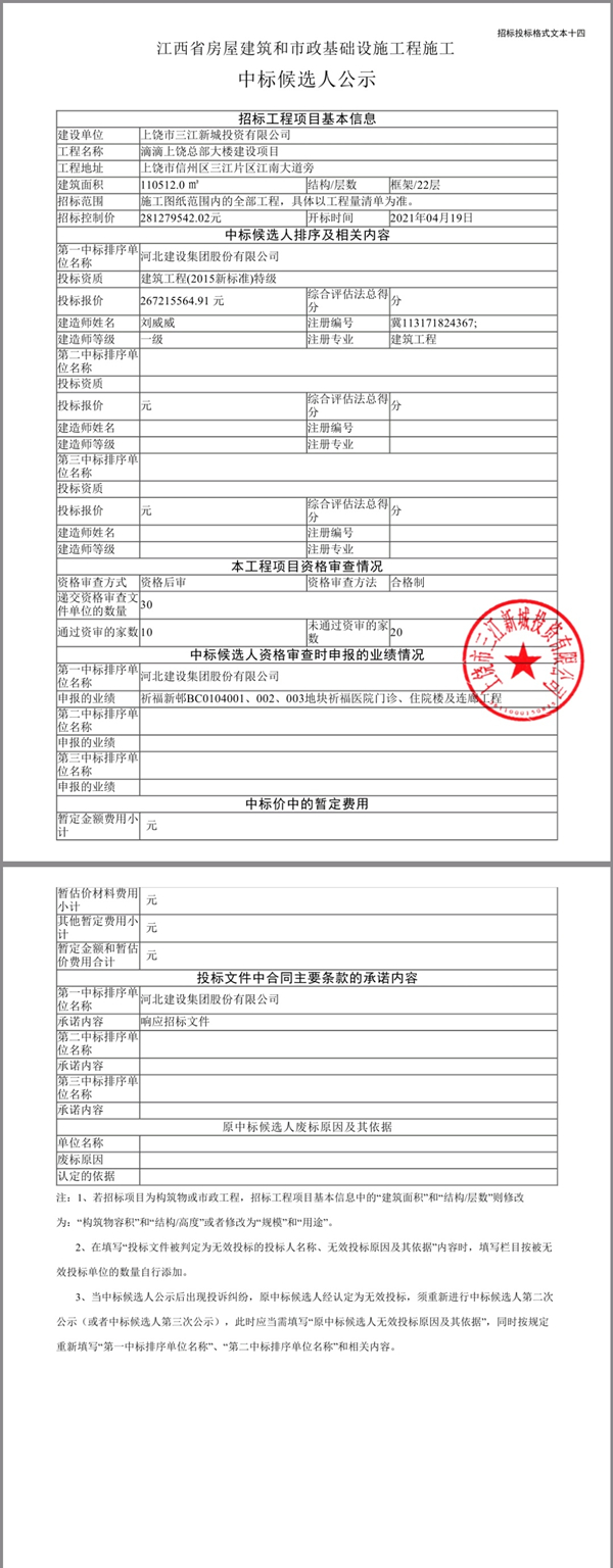 滴滴上饒總部大樓建設(shè)項(xiàng)目中標(biāo)候選人公示