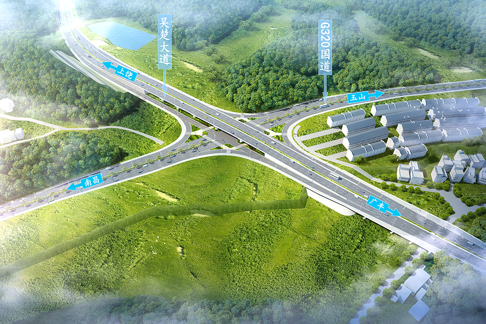 吳楚立交橋?yàn)橐患壒冯p向6車道(限速60km/h),主橋與匝道交匯處設(shè)立安全距離,確保行車安全,通車后大大縮減了廣豐區(qū)到信州區(qū)的路程,極大改善了民眾的出行條件,縮短了出行時間,亦可完善沿線的鄉(xiāng)、村公路與該道路的對接,改善沿線鄉(xiāng)鎮(zhèn)公路通行狀況。